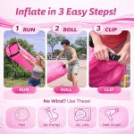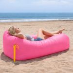 Nadmuchiwana sofa COMFYAIR zapewnia miękkość i wygodę zarówno w pomieszczeniach, jak i na zewnątrz. Jest lekka, przenośna i szybko się nadmuchuje. Ma wymiary 180 cm × 65 cm i jest dostępna w kolorze różowym lub niebieskim wraz z torbą do przenoszenia — idealna do wypoczynku w domu, na plaży lub na kempingu.
