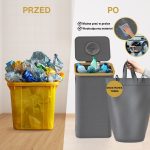 Przechowuje większą ilość odpadów i zmniejsza potrzebę częstego opróżniania, umożliwiając lepszą organizację i mniejsze przepełnienie śmieci.
