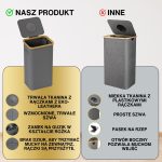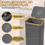 Ten pojemnik posiada wzmocnione szwy, trwałe materiały i wyrafinowany estetycznie szary kolor, który idealnie komponuje się z każdą przestrzenią – niezależnie od tego, czy jest to nowoczesne biuro, czy minimalistyczna kuchnia. Jego kompaktowa, ale pojemna konstrukcja pozwala na efektywny recykling bez zajmowania zbyt dużej przestrzeni.