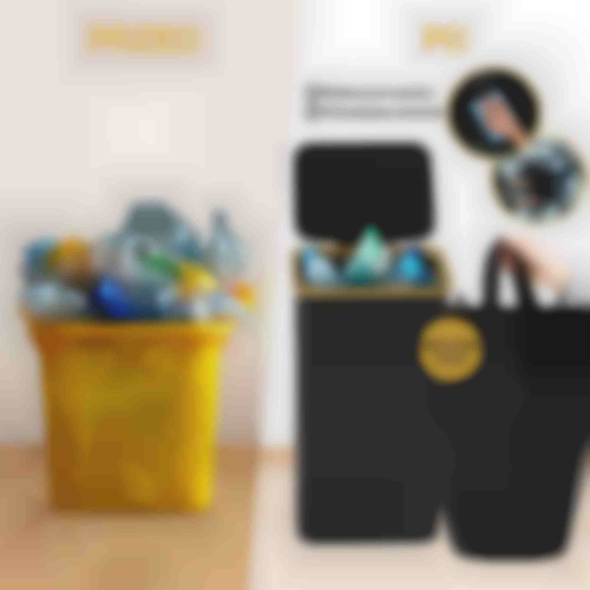 - POJEMNOŚĆ 100L: Zapewnia dużo miejsca na dużą ilość materiałów do recyklingu, od szkła po plastik. Wewnętrzny worek ułatwia podnoszenie, czyszczenie i organizację.