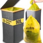 - POJEMNOŚĆ 90 L: Specjalnie opracowany dla 90-litrowych żółtych worków, ale nadaje się również do innych worków na śmieci o tej samej lub większej pojemności. Doskonały do wszechstronnego usuwania odpadów.